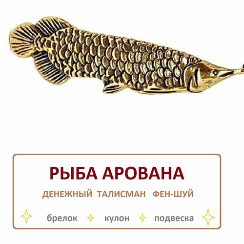 Амулеты обереги и талисманы на удачу и процветание Рыба Арована 60х12х5 мм, бронза