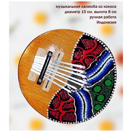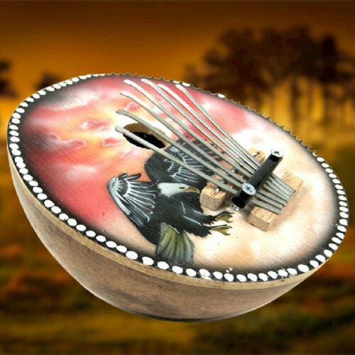 Щипковый африканский музыкальный инструмент "Калимба" 15 см , изделие из кокоса, ручная работа
