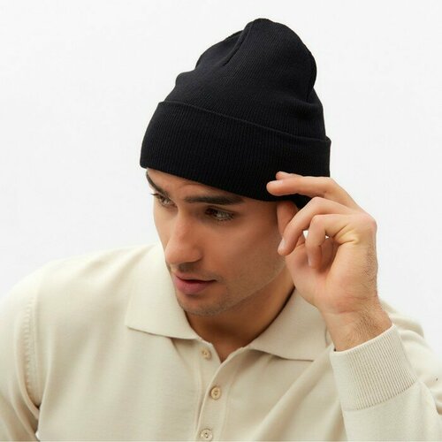 Шапка мужская двуслойная с отворотом one size, цвет чёрный