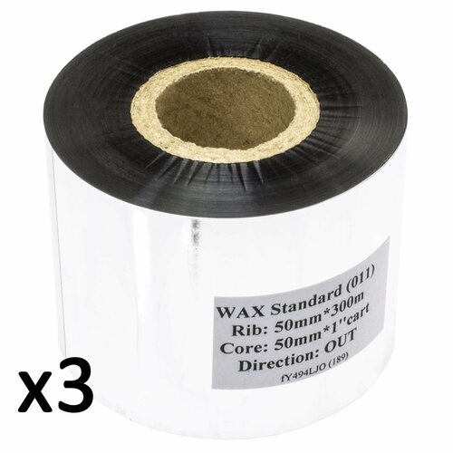 Набор 3 штуки. Риббон Wax Standard (50 мм x 300 м x 1" x 50 мм OUT) (011)