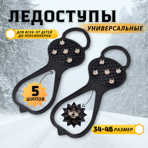 Ледоступы для обуви 5 шипов универсальный размер 34-46, ледоходы, шипы от гололеда, накладки противоскользящие зима женские, мужские, детские