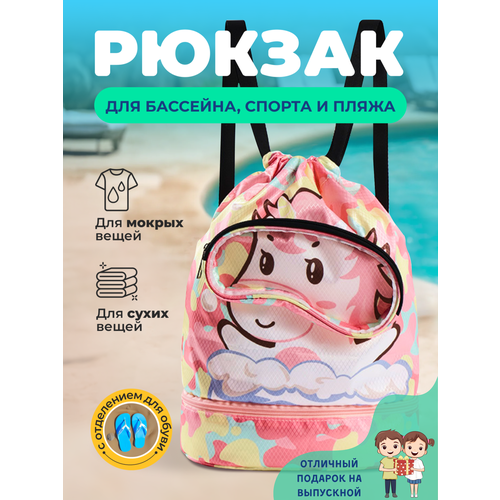 Водонепроницаемый рюкзак мешок пони для детских вещей, сумка для бассейна и пляжа для девочки с отделением для тренировки