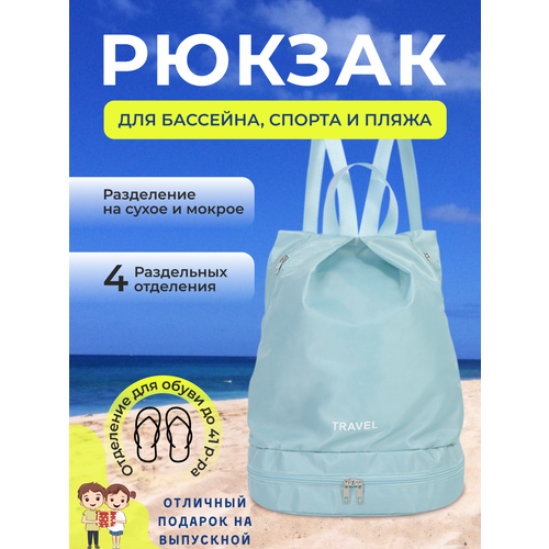 Спортивный рюкзак для бассейна, фитнеса, тренировок и пляжа - для подростков, девочек, мальчиков с отделением - карманом для сухой и мокрой одежды и отделом для обуви.