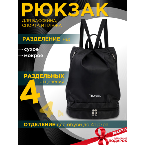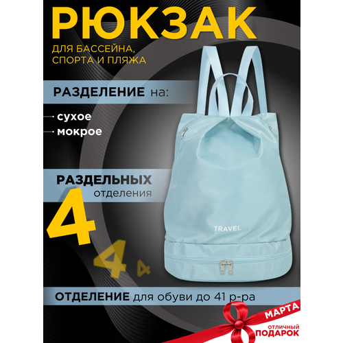 Спортивный рюкзак женский для бассейна, фитнеса, тренировок и пляжа - для подростков девочек с отделением для сухой и мокрой одежды и отделом для обуви.