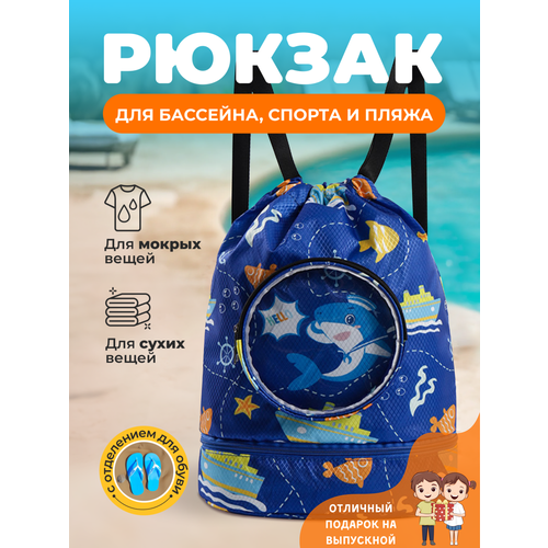 Водонепроницаемый рюкзак мешок кит для детских вещей, сумка для бассейна и пляжа для мальчика и девочки с отделением для обуви сменки в сад и школу