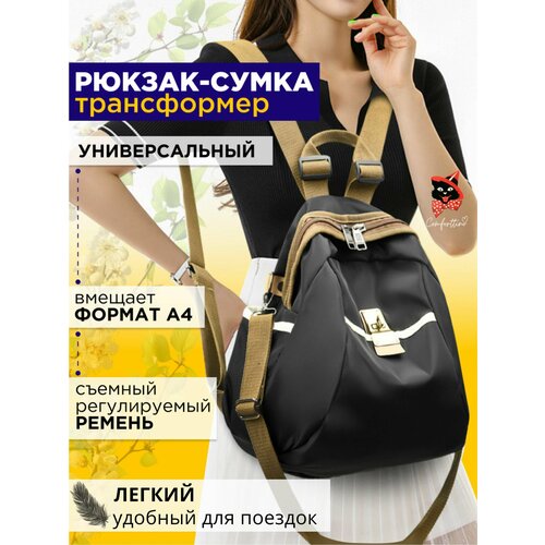 Рюкзак сумка женский тканевый черный; городской рюкзак трансформер стильный для девочек подростков с карманами вместительный