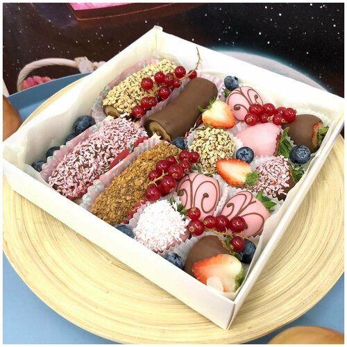 Набор из бананов в шоколаде и клубники / подарочный набор / молочный шоколад