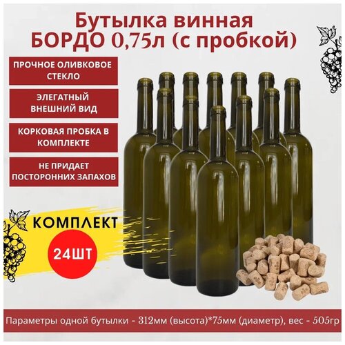 Бутылки винные «Бордо» с пробками 24 шт по 0,75 л.