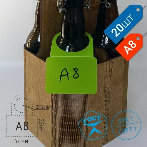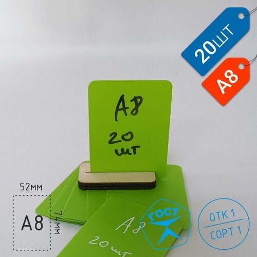 Ценник А8 зеленый для маркера для горлышка бутылок, 20 шт