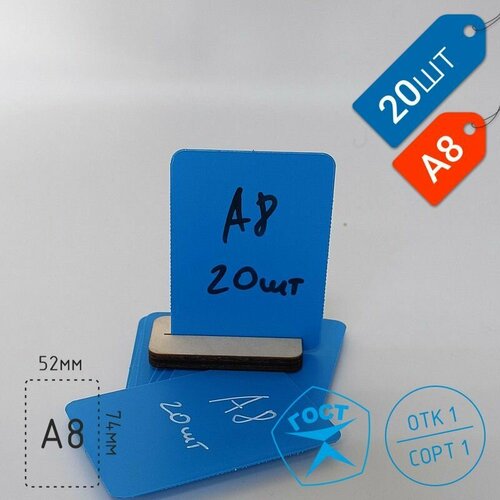 Ценник А8 синий для маркера для горлышка бутылок, 20 шт