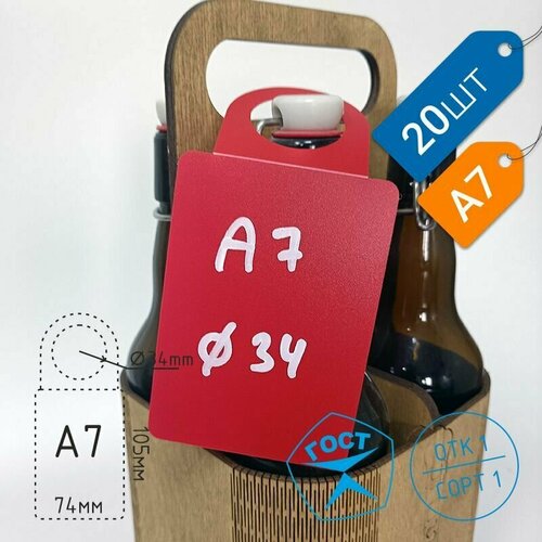 Ценник А7 красный, меловой, грифельные для горлышка бутылок, 20 шт