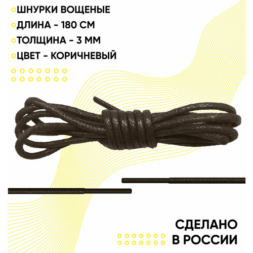 Шнурки вощеные круглые 180 сантиметров, диаметр 3 мм. Сделано в России. Коричневые