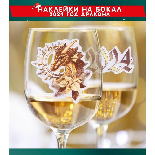 Наклейки на бокалы новогодние, символ года, Новый 2024, год Дракона.