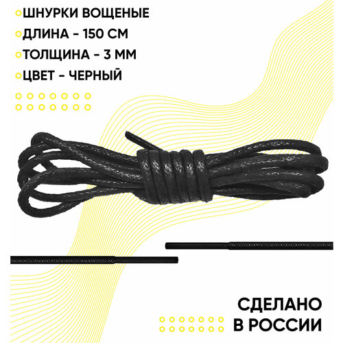 Шнурки вощеные круглые 150 сантиметров, диаметр 3 мм. Сделано в России. Черные
