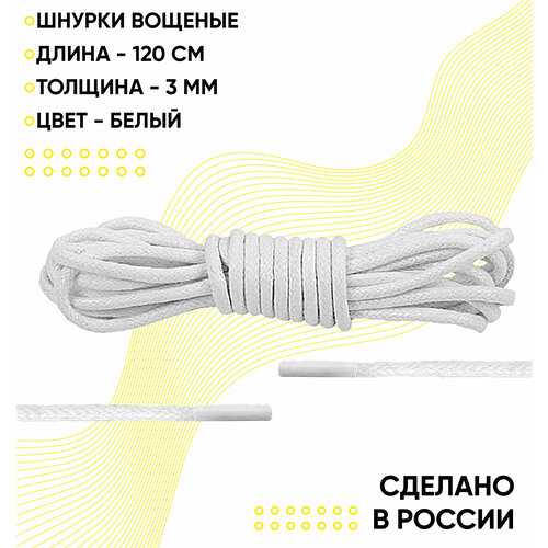 Шнурки вощеные круглые 120 сантиметров, диаметр 3 мм. Сделано в России. Белые