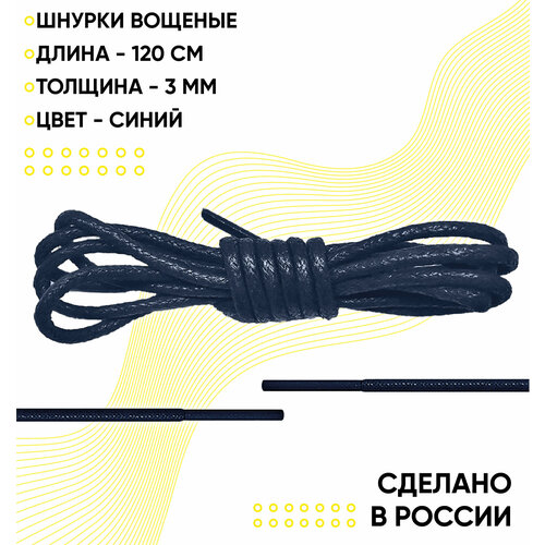 Шнурки вощеные круглые 120 сантиметров, диаметр 3 мм. Сделано в России. Синие