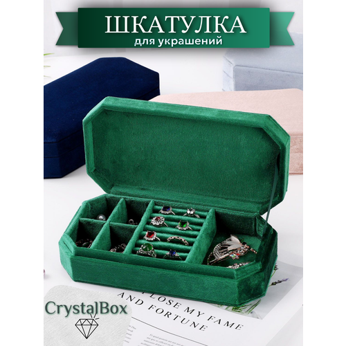 Шкатулка для украшений от CrystalBox, бархатная, изумрудная