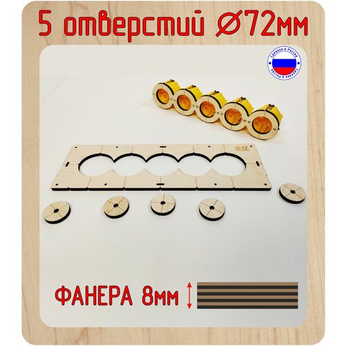 Шаблон для сверления и установки подрозетников на 5 отверстия, диаметром 72 мм, толщина 8 мм, Межцентровое расстояние 71мм.