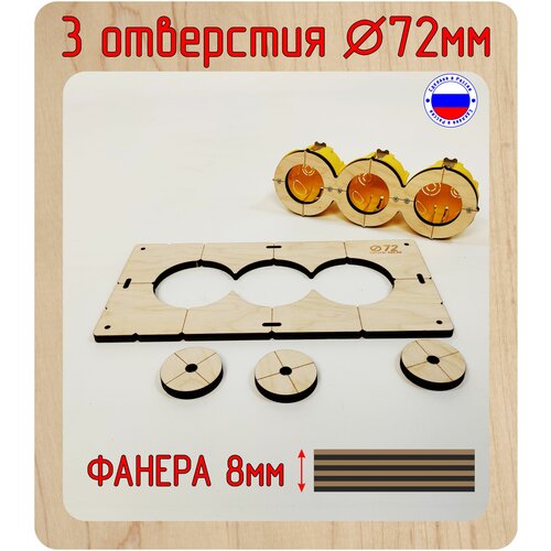 Шаблон для сверления и установки подрозетников на 3 отверстия, диаметром 72 мм, толщина 8 мм, Межцентровое расстояние 71мм.