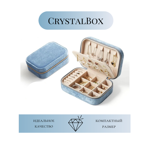 Шкатулка для украшений "CrystalBox", маленькая, дорожная, нежно-голубая, бархатная
