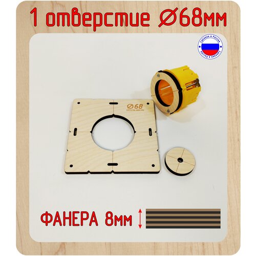 Шаблон для сверления и установки подрозетников на 1 отверстие, диаметром 68 мм, толщина 8 мм, Межцентровое расстояние 71мм.