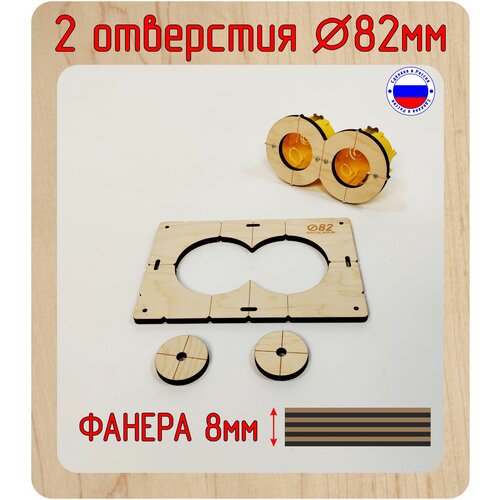 Шаблон для сверления и установки подрозетников на 2 отверстия, диаметром 82 мм, толщина 8 мм, Межцентровое расстояние 71мм.