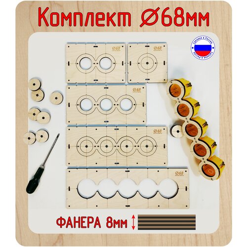 Комплект шаблонов для сверления и установки подрозетников 5 шт. диаметром 68 мм, толщина 8 мм, Межцентровое расстояние 71мм.