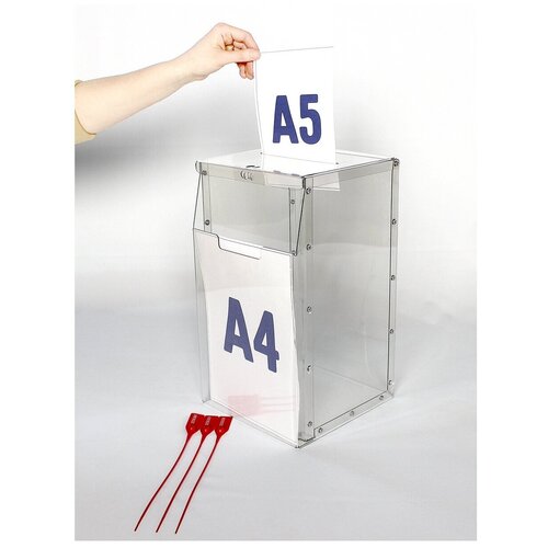 Ящик для пожертвований с информатором А5 и 3 пломбы, ящик для голосования, Размер 30х23х16 см, Материал ПЭТ, толщина 1,5 мм, А5