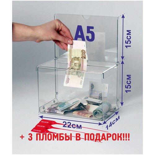 Ящик для пожертвований и 3 пломбы, ящик для голосования, Размер 28х14х14 см, Материал ПЭТ толщина 1,5 мм
