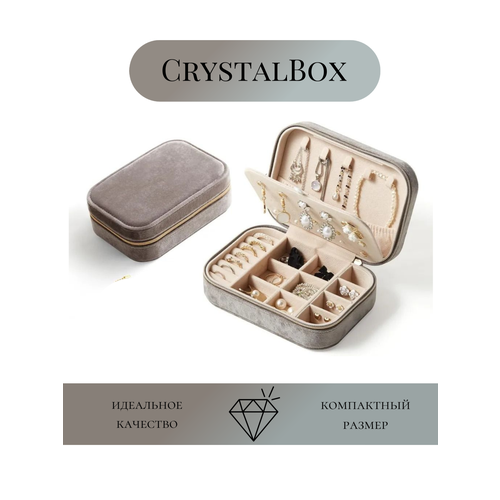 Дорожная шкатулка для украшений CrystalBox, маленькая, серая, бархатная