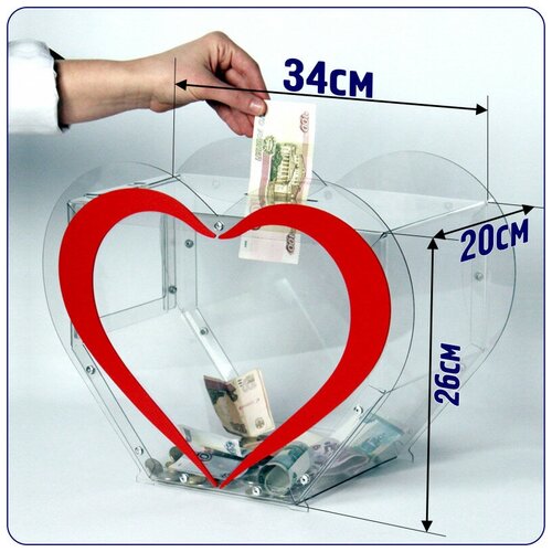 Ящик для пожертвований в форме сердца, ящик для сбора пожертвований, ПЭТ, 40х30х20 см