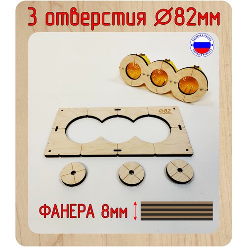 Шаблон для сверления и установки подрозетников на 3 отверстия, диаметром 82 мм, толщина 8 мм, Межцентровое расстояние 71мм.