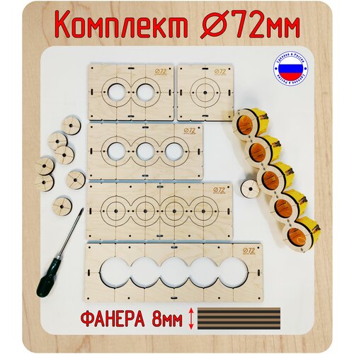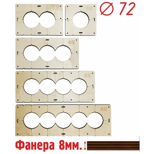Комплект шаблонов для сверления подрозетников 5 шт. диаметром 72 мм, толщина 8 мм