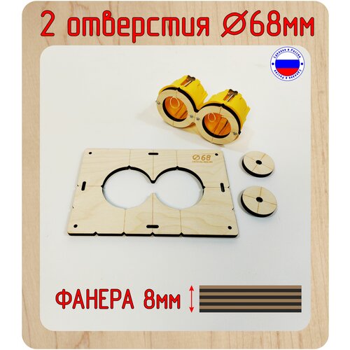 Шаблон для сверления и установки подрозетников на 2 отверстия, диаметром 68 мм, толщина 8 мм, Межцентровое расстояние 71мм.