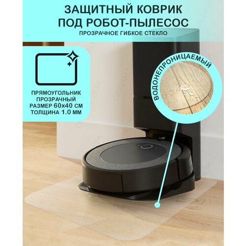 Прозрачный коврик под миску для кошек и собак CrystalDesk 38х60 см. Гибкое стекло ПВХ 1.5 мм. Для животных CRYSTALDESK