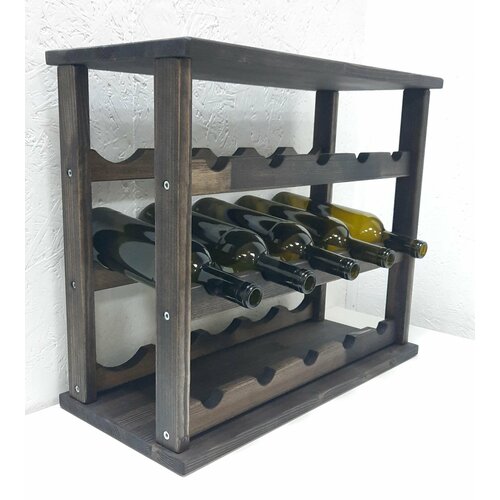 Винный стеллаж с цельными стойками и вырезами для 12 бутылок цвет дерева