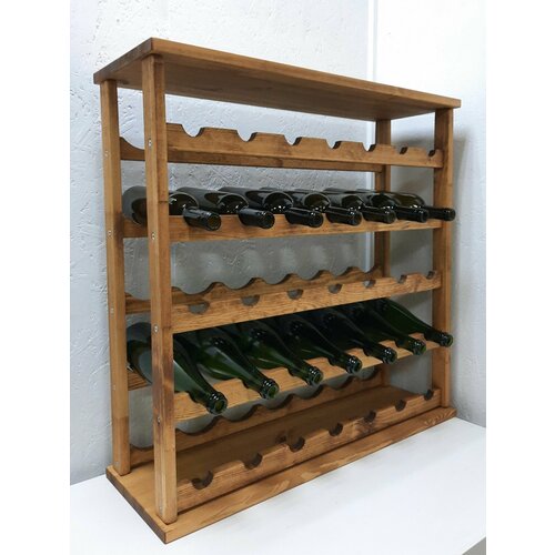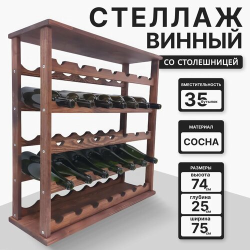Винный стеллаж из дерева со столешницей для 35 бутылок. 5 ярусов по 7. В обжиге