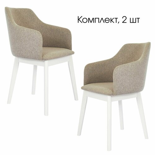 Стул полукресло с подлокотниками в гостиную, для кухни КАФ, комплект стульев 2шт, Белый/жаккард Карамель