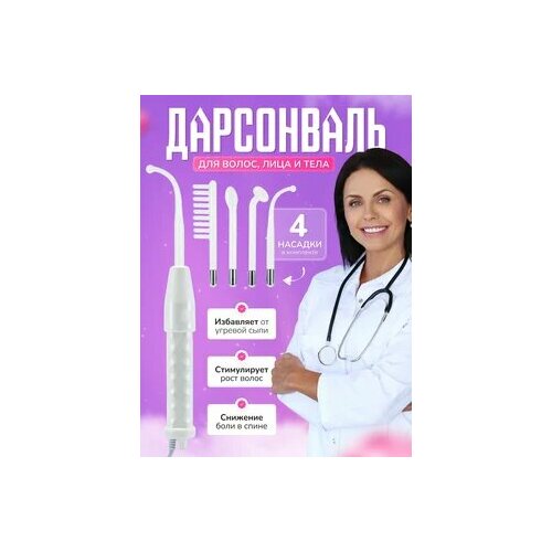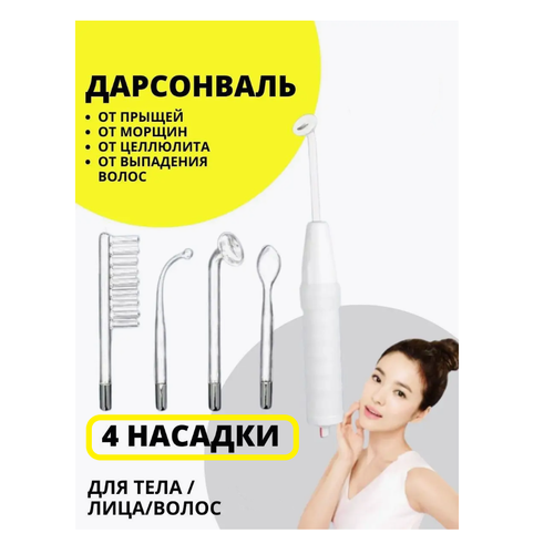 Дарсонваль аппарат для волос, лица и тела 4 сменных насадки
