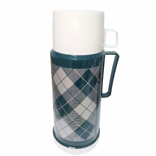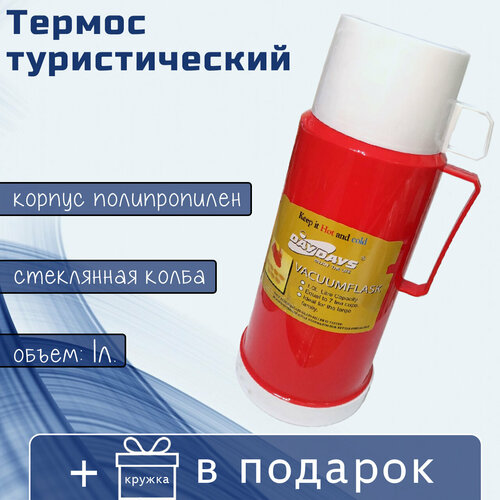 Термос 2644 с двумя кружками 1 л, со стеклянной колбой, корпус пластик