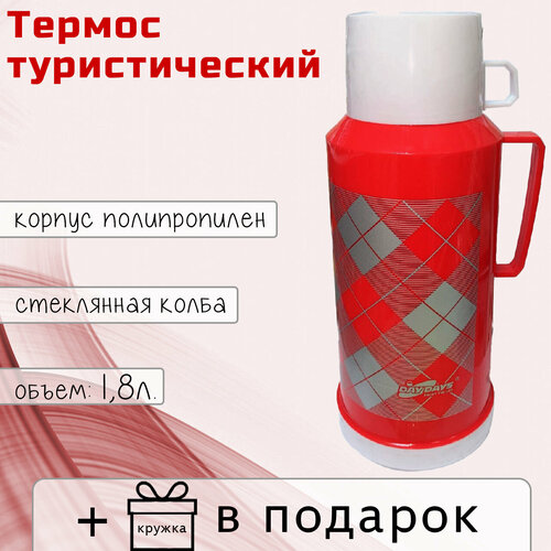Термос Day Days с двумя кружками 1,8 л, со стеклянной колбой