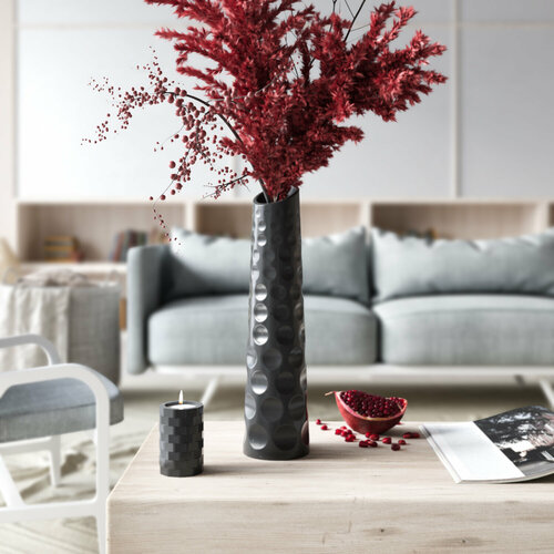 Ваза декоративная для сухоцветов, цветов "Thessaloniki M", арт бетон глянцевая, черная