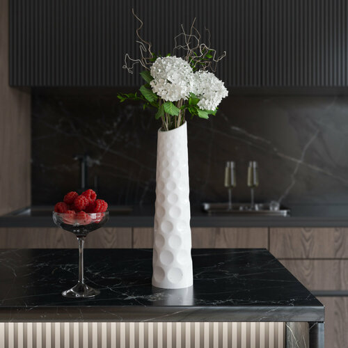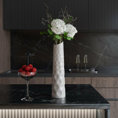 Ваза декоративная для сухоцветов, цветов "Thessaloniki M", арт бетон глянцевая, белая