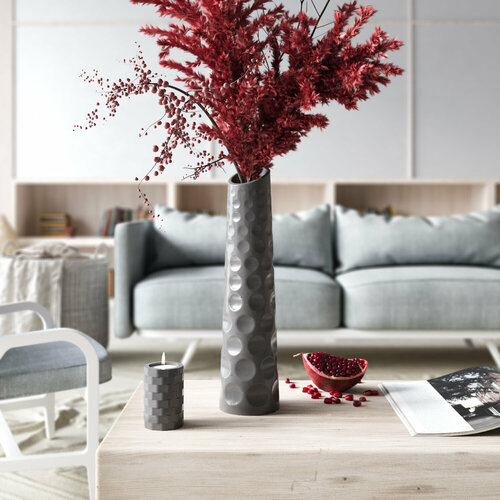 Ваза декоративная для сухоцветов, цветов "Thessaloniki M", арт бетон глянцевая, серая