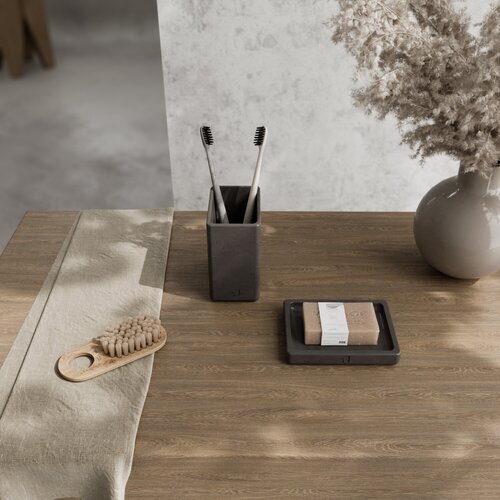 Набор аксессуаров для ванной комнаты "Oxford" арт бетон темно-серый, 2 предмета: стакан, мыльница