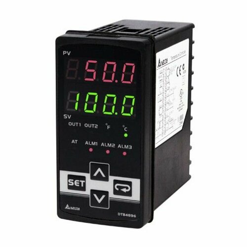 Температурный контроллер Delta Electronics DTB4896VRT, 48х96мм, выход 1: напряжение(14В); выход 2: реле; RS-485; вход датчика тока