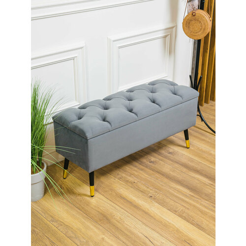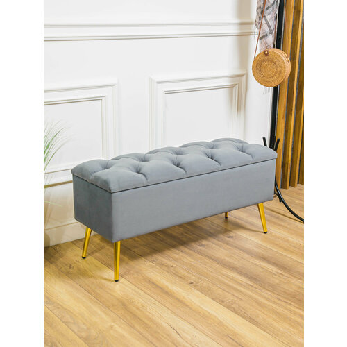 Банкетка Дэрия с ящиком для хранения светло-серый пуф с каретной стяжкой