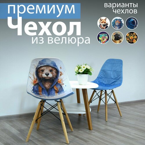 Чехлы на стулья со спинкой из велюра 1шт. заяц Desing Studio 3D
