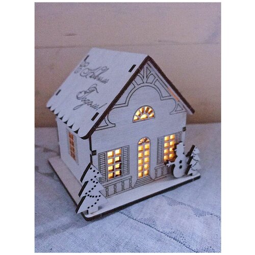Новогодний светильник со светодиодной свечой Домик "Снеговик"