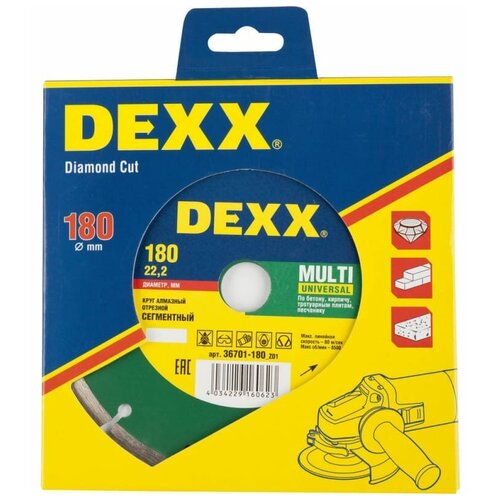 Круг отрезной алмазный DEXX универсальный, сегментный, для УШМ, 180х7х22,2мм